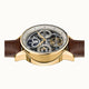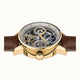 The star feature of The Jazz Watch is the skeleton dial that gives you a great view of the inner workings of this modern timepiece. There's also three sub dials that display 24-hour time and a sun/moon indicator. The brown leather strap is a luxurious and comfortable finishing touch.