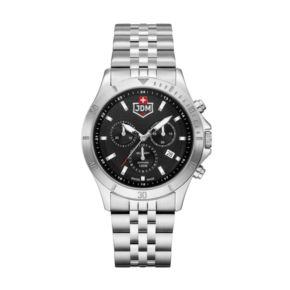 JDM Military | Delta chrono black 42mm dial silver link | JDM-WG009-01