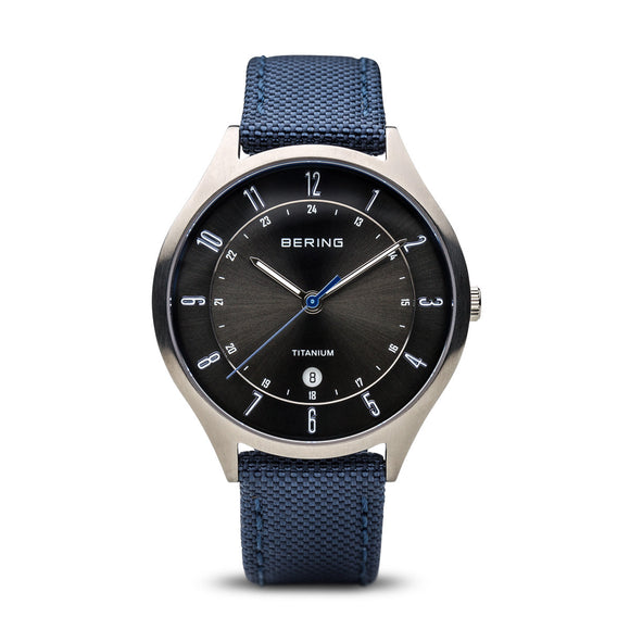 Bering | Titanium brushed silver 39mm dial blue nato | 11739-873