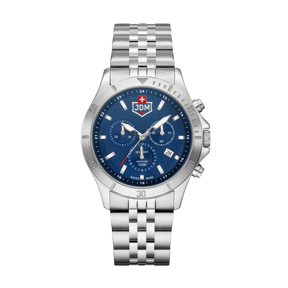 JDM Military | Delta chrono blue 42mm dial silver link | JDM-WG009-03