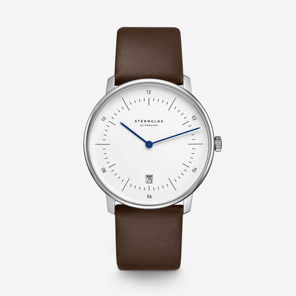 Sternglas | Naos white 38mm dial dark brown leather band | S01-NA01-PR04
