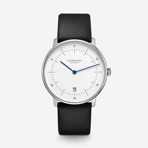 Sternglas | Naos white 38mm dial black leather band | S01-NA01-PR07