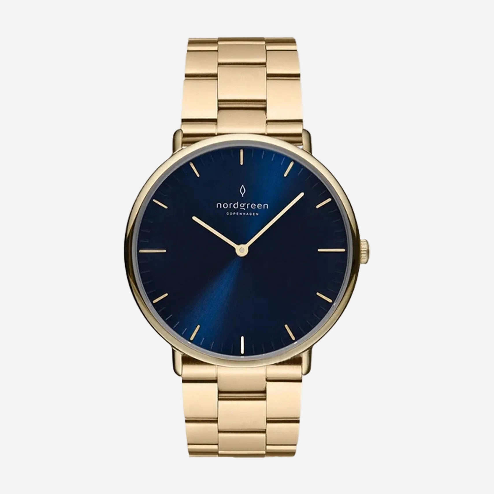 Nordgreen | Native gold 36mm navy blue dial gold 3 link strap | NR36GO3LGONA