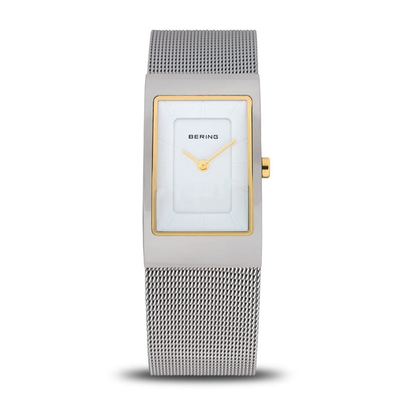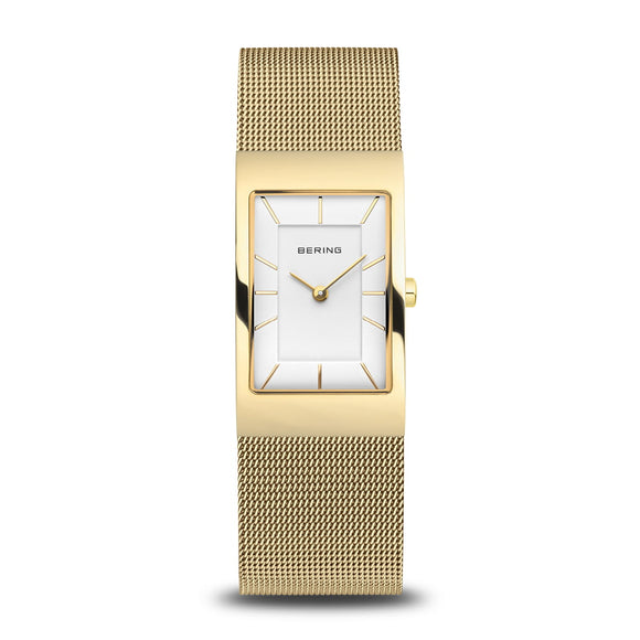 Bering | Classic 38mm polished gold white dial mesh strap | 10222-331-S