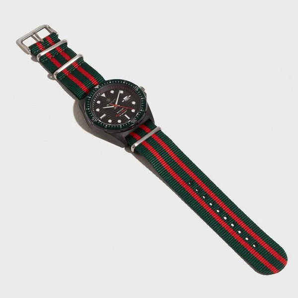 Embrace sustainable style with the Gant R.O.P., a 45mm sports watch crafted from recycled ocean plastic. The striking blue dial pairs with a vibrant red and blue NATO strap for a lightweight, hypoallergenic fit.